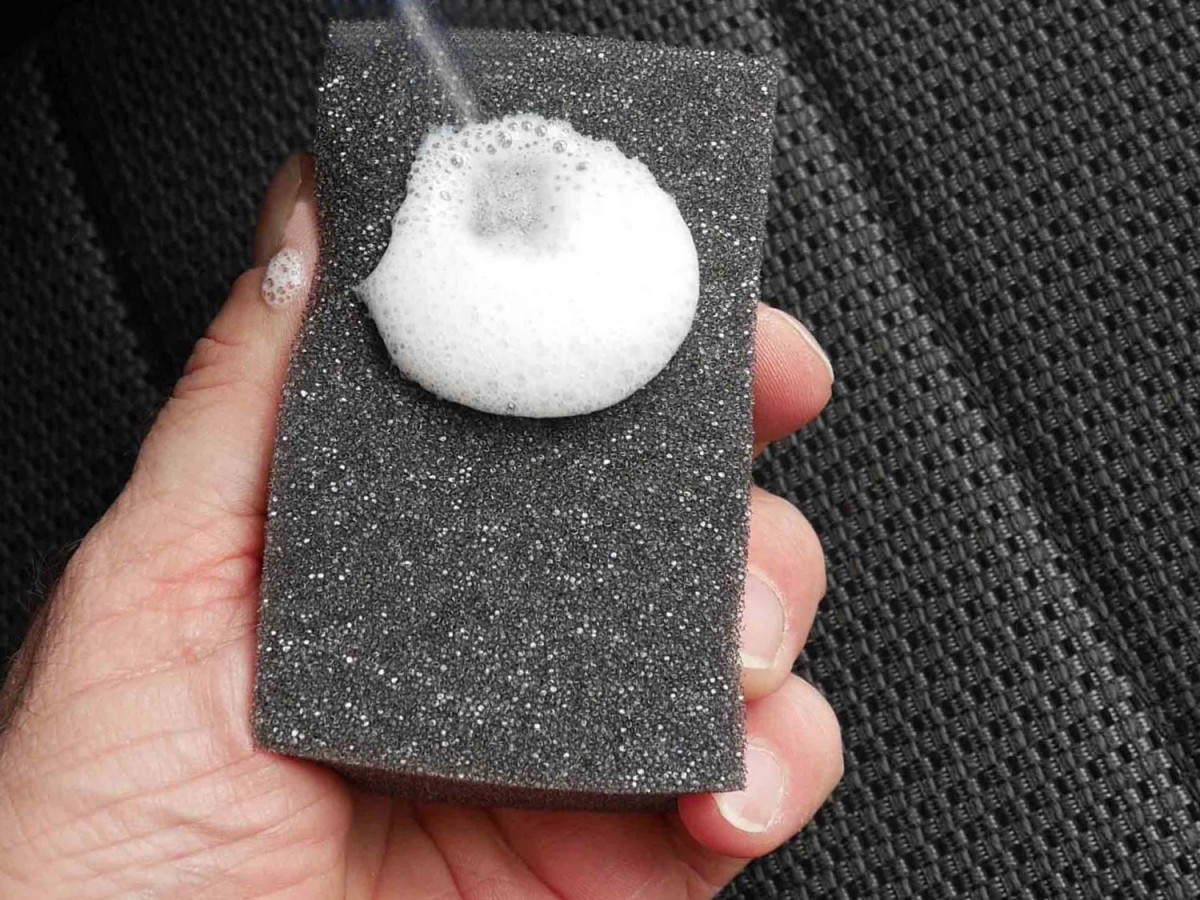 Velká polyuretanová houbička určená k nanášení čistících přípravků.
